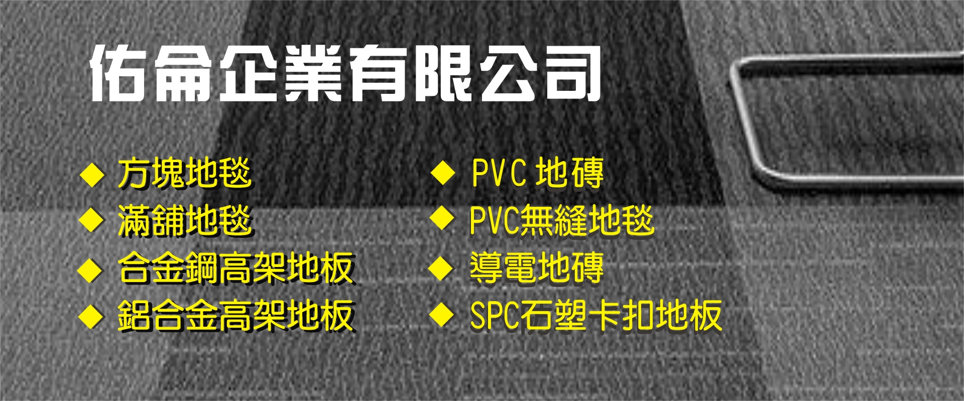佑侖企業有限公司 - SPC石塑卡扣地板、滿鋪地毯、方塊地毯、PVC地磚、PVC無縫地毯